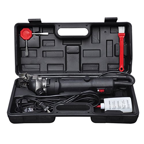 Este set de esquilar para ovejas consiste en: Una máquina de esquilar de ovejas, un destornillador especial, 2 cepillos de carbono especiales, 1 botella de aceite lubricante especial, 1 cepillo de limpieza y 1 caja de transporte y almacenamiento. Este set profecional para ovejas es adecuado para la lana de oveja normal. Los brazos son ergonómicos pues muy cómodos y fáciles de usar. También hay un extra cable largo incluido.
